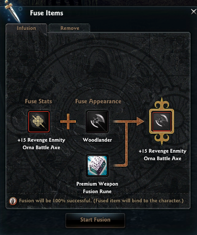 • Right-click the Premium Weapon Fusion Rune to open the Fuse Items Menu.