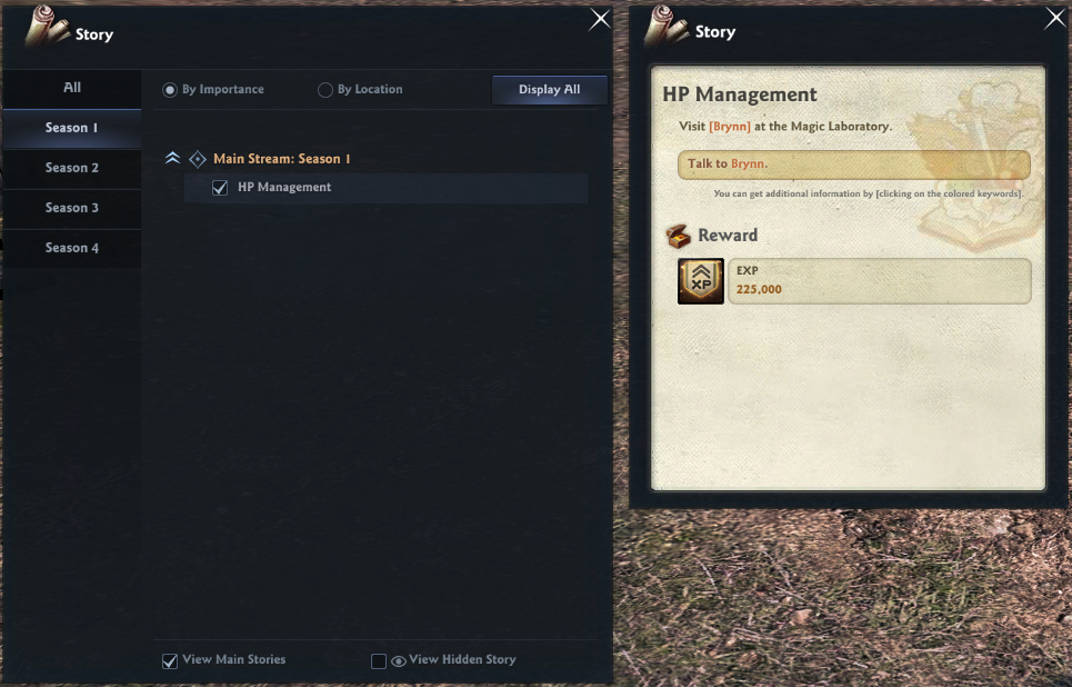 • Hidden stories are neither displayed in the story list nor beside the relevant NPCs.