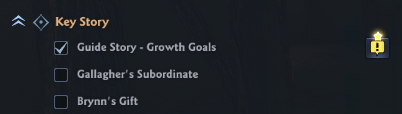 Clicking the story title will display the story information (how to progress and rewards) as shown below.