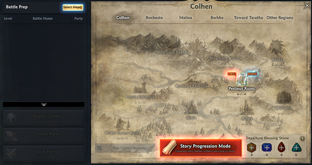 If you click the 'Story Progression Mode' button without selecting the battle region or battle, you can immediately enter and play the battle corresponding to the story.