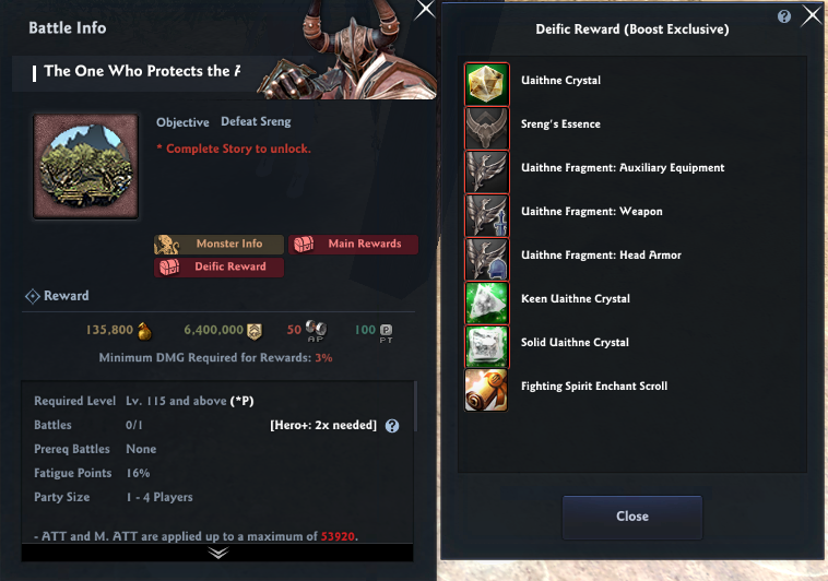 - The type of rewards provided can be seen by clicking [Deific Reward] to open the [Battle Info] pop-up.