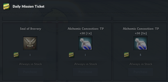 You can also exchange Mission Tickets with Seals of Bravery through the exchange shop in Event(in the bottom right corner of the screen) > Exchange Shop > Daily Mission Ticket.
