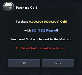Once purchased, Airgead can be used to purchase paid items and to make transactions in the Gold Trading Post.