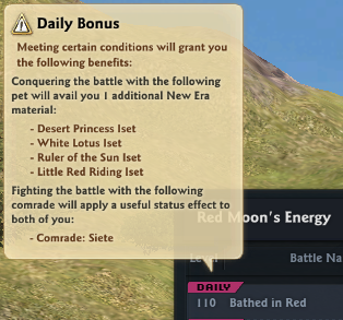 Additionally, when you go into battle in [Toward Taratha > 'Red Moon's Energy' Battle Region] with a rare Pet, a 'Daily Bonus' will be applied under certain conditions.