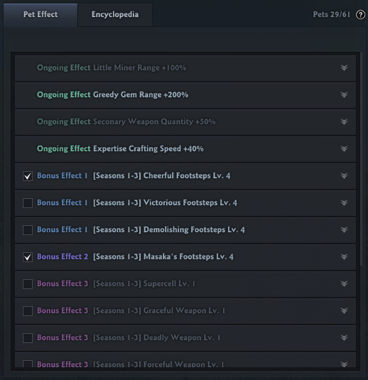In the Pet Effects tab, you can check what effects you can get from pets.