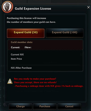 If the Guild Master does not access the game for mor than 30 days and the guild have difficulties in management, the [Accept Master Permissions] menu will be activated for members with Administrator access.