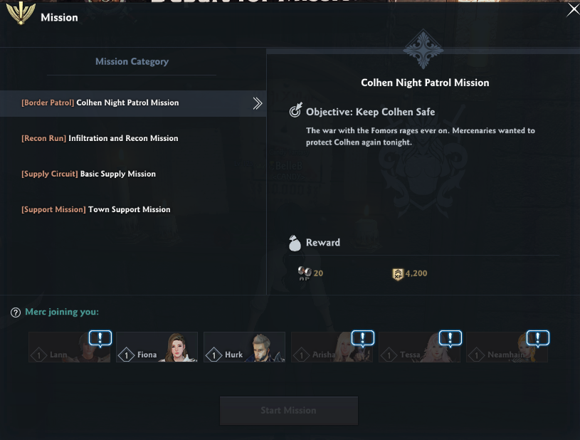 - You cannot depart for missions with a mercenary you haven't spoken with yet.