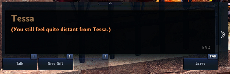 To give a gift, you must approach them and click 'Give Gift.'