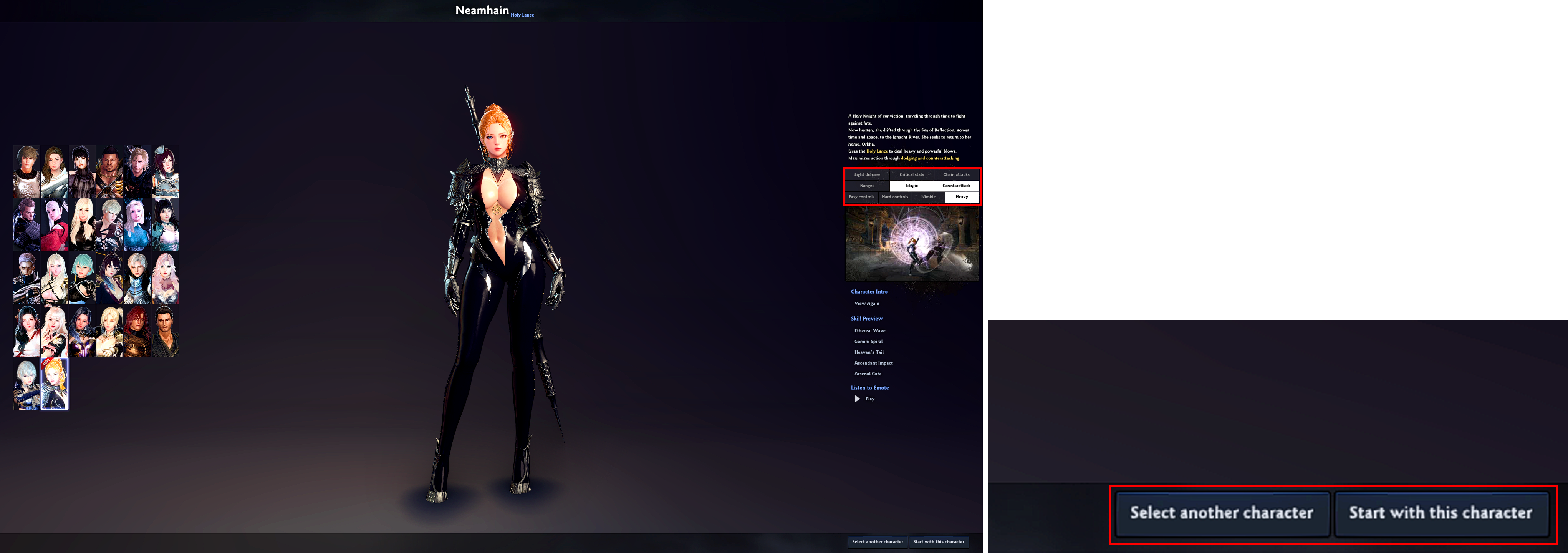 On the right side of the screen, you can see the specialties for each character. After choosing a character with your favorite specialties, press the [Start on this character] button.