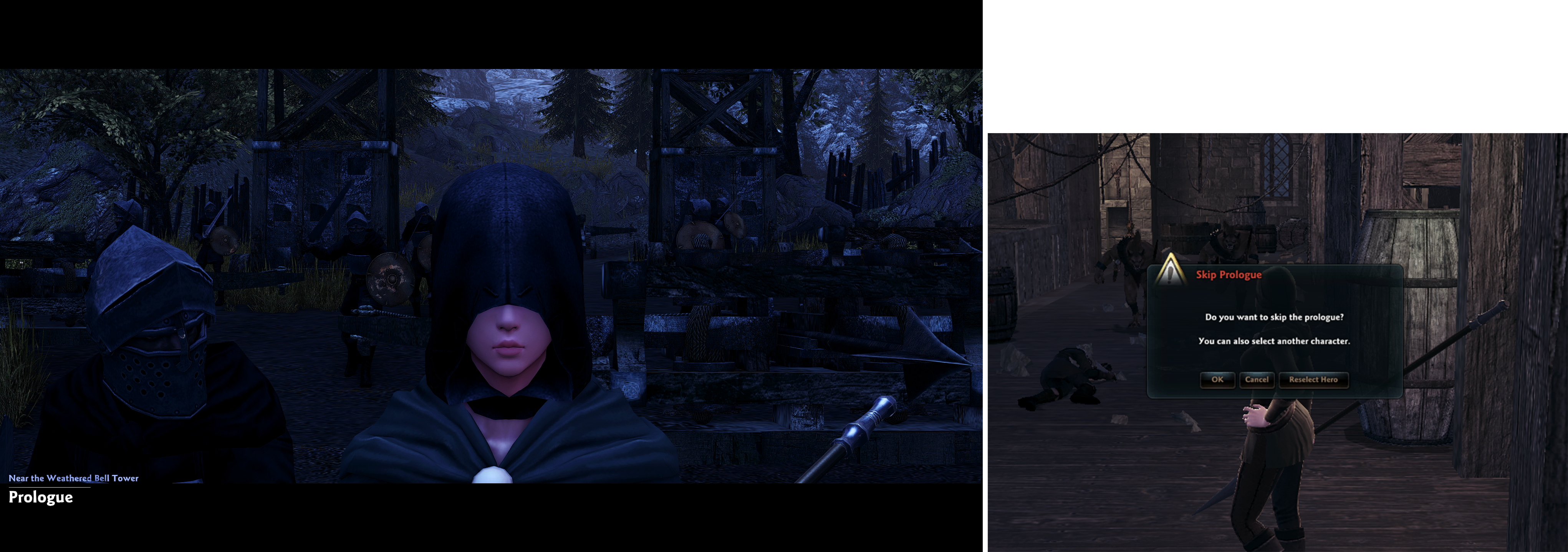 You can use the ESC key to skip the prologue, or to reselect your character. If you skip the prologue, you won't be able to replay it afterward, so take care when pressing the ESC key.