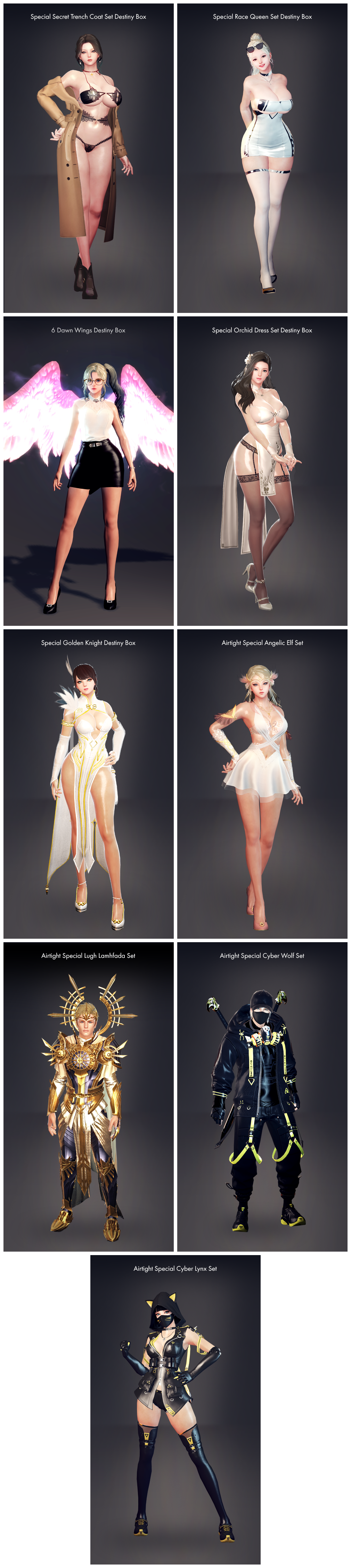 - Certain parts of outfits may not display as intended if worn with outfits/equipment from another set. Please use the Wardrobe to preview before purchasing.