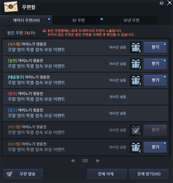 The current in-game mailbox UI was something that did not align with modern gaming design and caused various inconveniences during use. In the upcoming overhaul, we focused on two aspects: Replacing the outdated visuals for visibility and enhancing the convenience of checking / retrieving items.